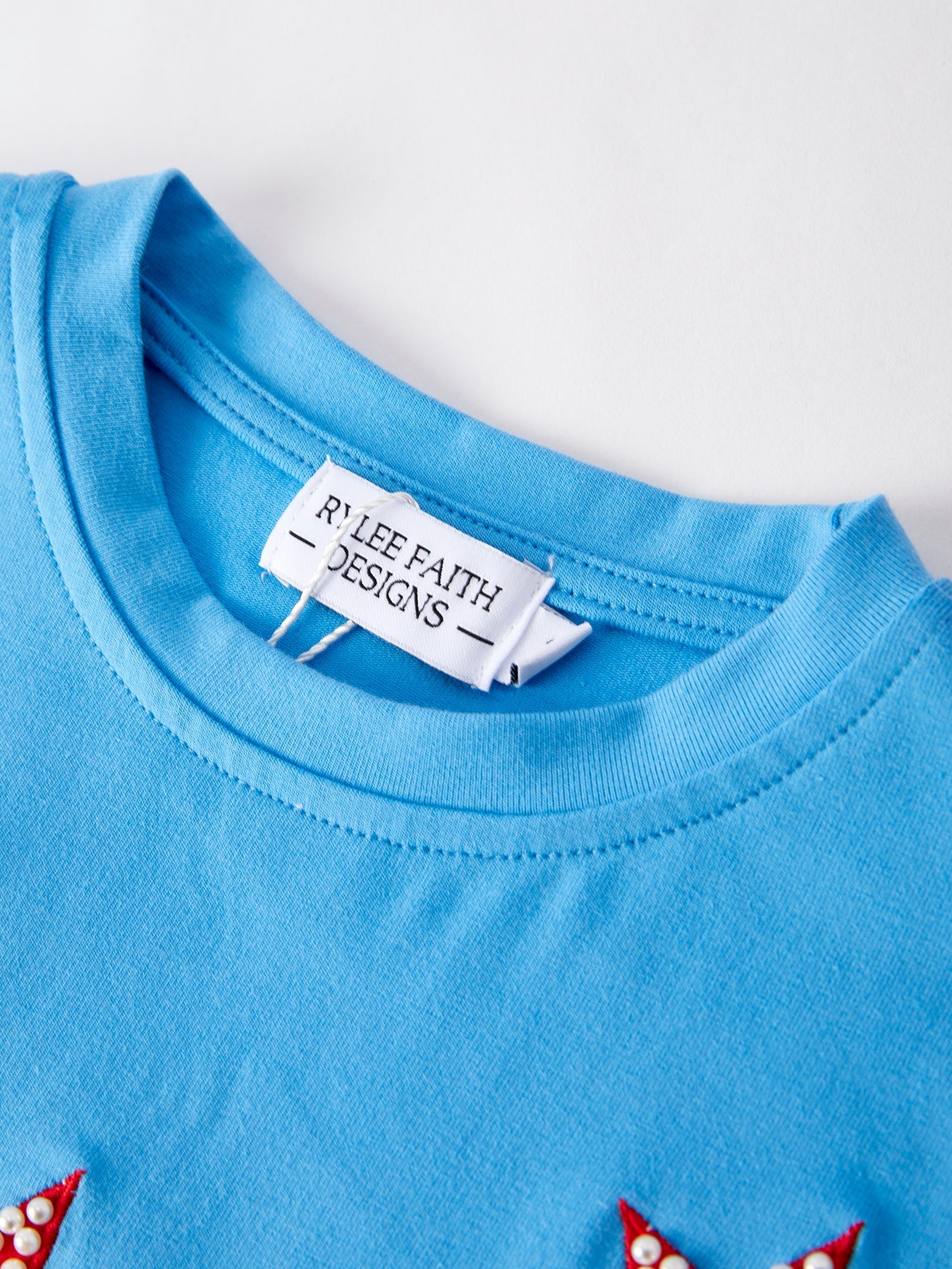 Celebrate the 4th of July in style with our Star Applique Pearl Embellished Girls Set! Made with high quality materials, this set features a stunning star applique design and elegant pearl embellishments. Perfect for any patriotic event, your little girl will shine with pride and confidence.