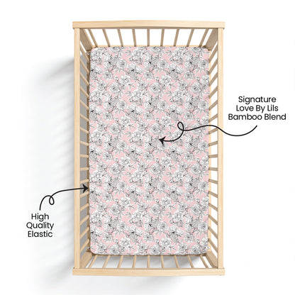 Add some LC to your baby's nursery with our ultra-soft bamboo crib sheet. Crib sheets are designed to fit all standard baby mattresses. Our high-quality elastic around the hem of the entire crib sheet ensures a tight fit that looks clean and modern. Our gentle bamboo fabric is excellent for your cuties's delicate skin, helps with heat regulation, and is buttery soft. Elevate the look of your little one's nursery with our signature designs.