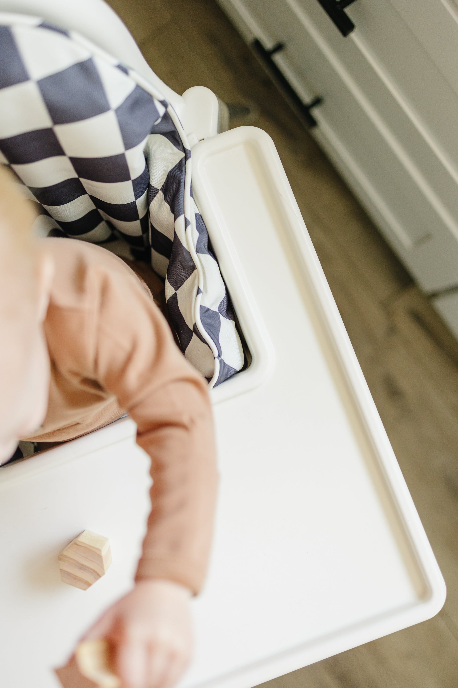Black Checks printed a white background! Wipeable cushion cover for the IKEA Antilop Highchair