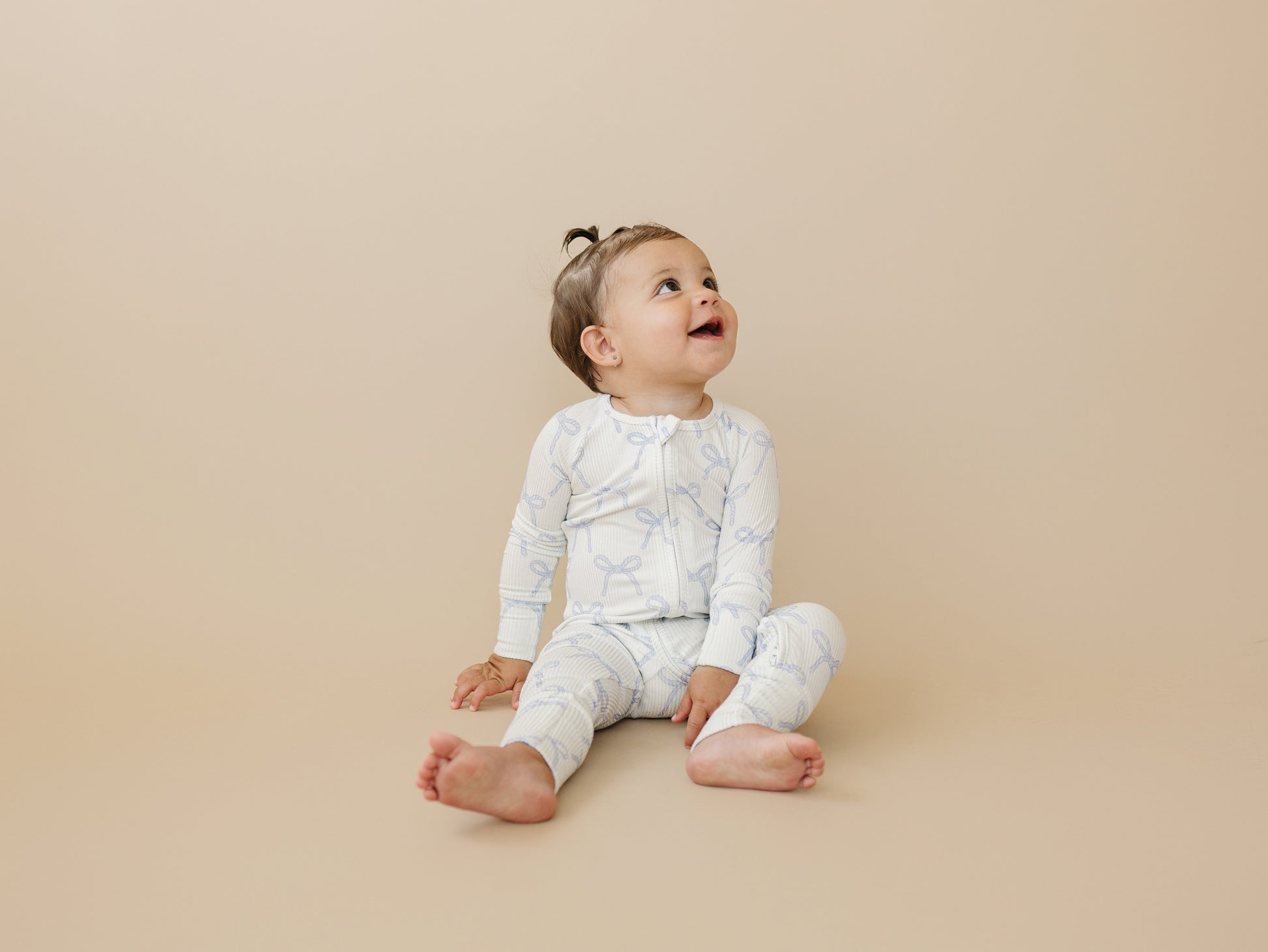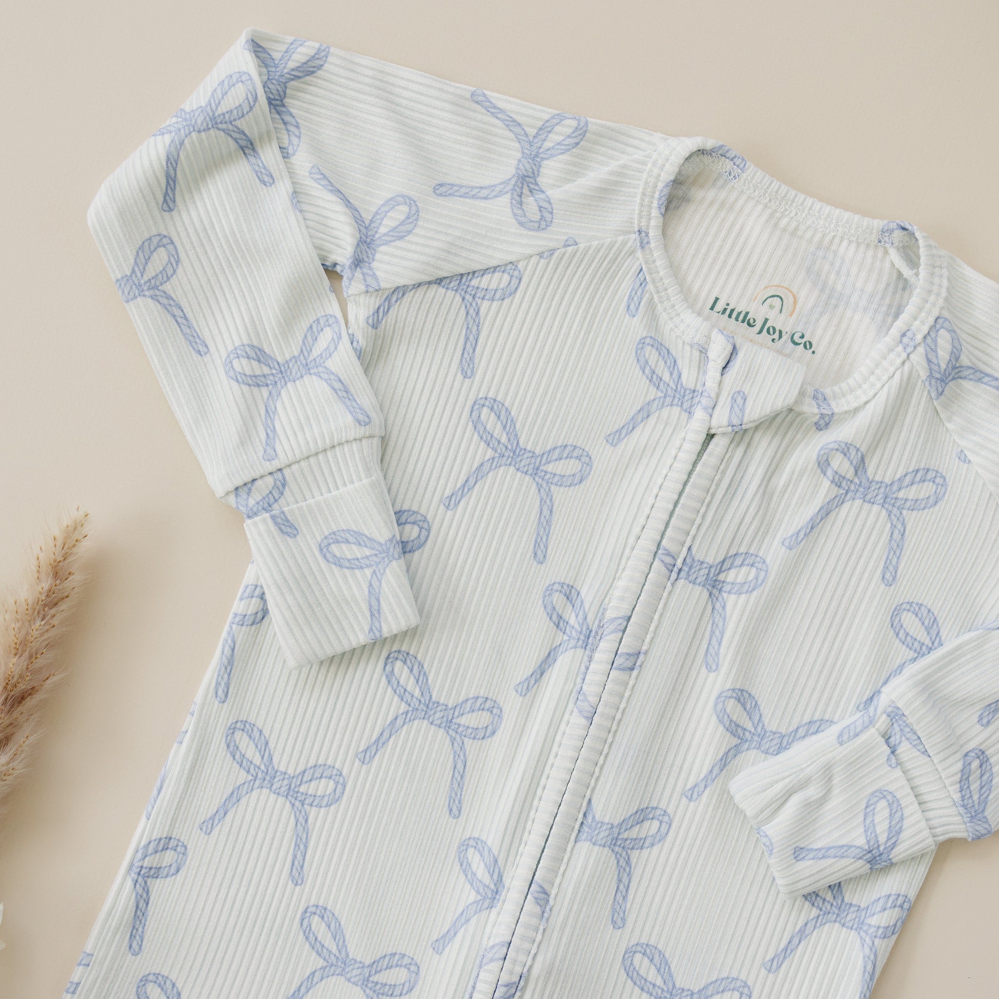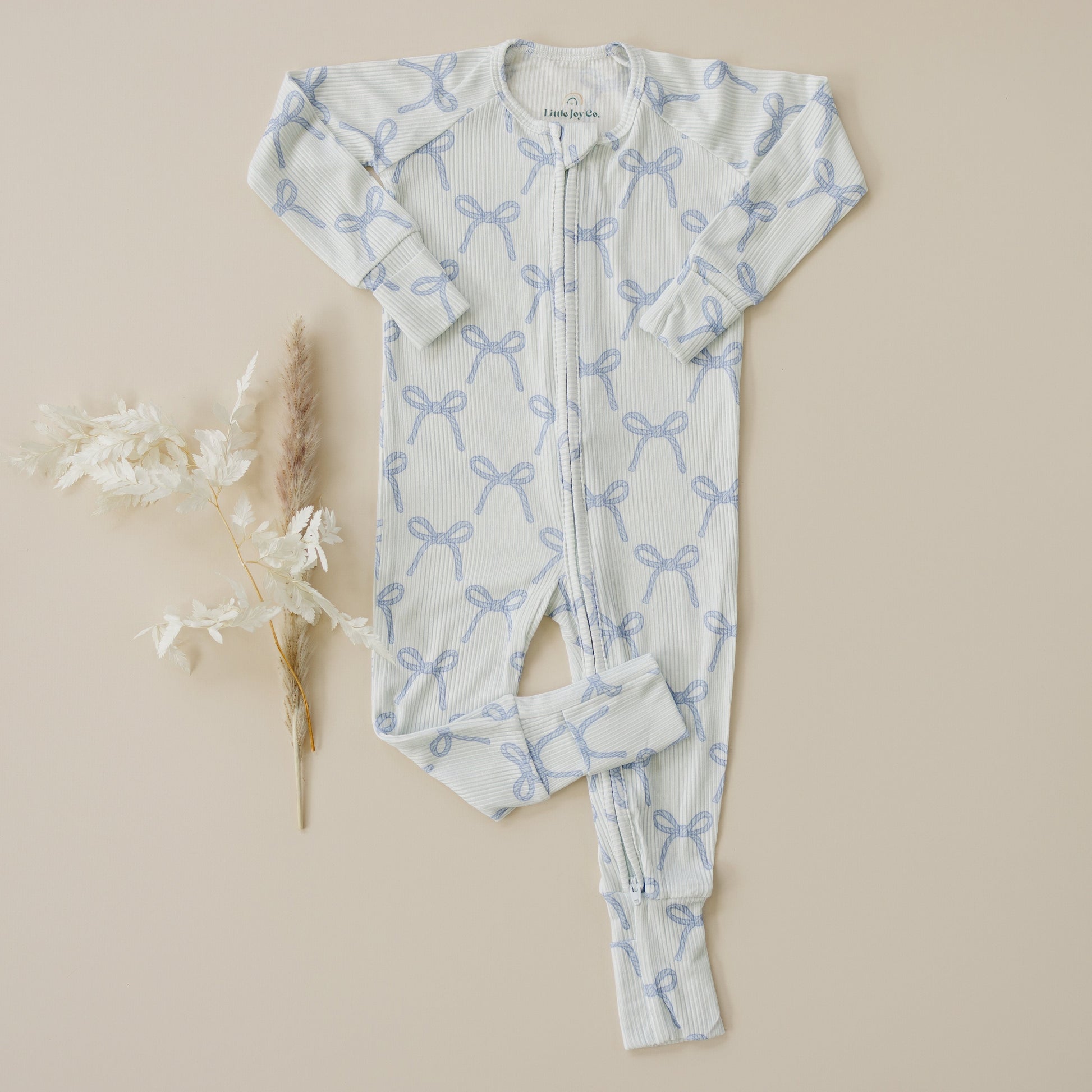 Discover comfort and style with our Ribbed Bamboo Zippy Romper. Made from a luxurious blend of 95% bamboo viscose and 5% spandex. Features foldover feet for all sizes.