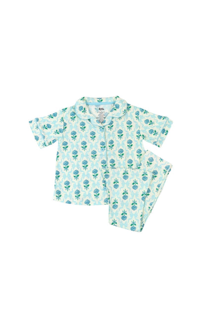The set includes a short sleeve top with a relaxed fit and coordinating flared pants that add just the right amount of sass and twirl. Crafted from seasonal bamboo viscose, it's incredibly soft, breathable, and gentle on sensitive skin—perfect for playdates, naps, and everything in between.