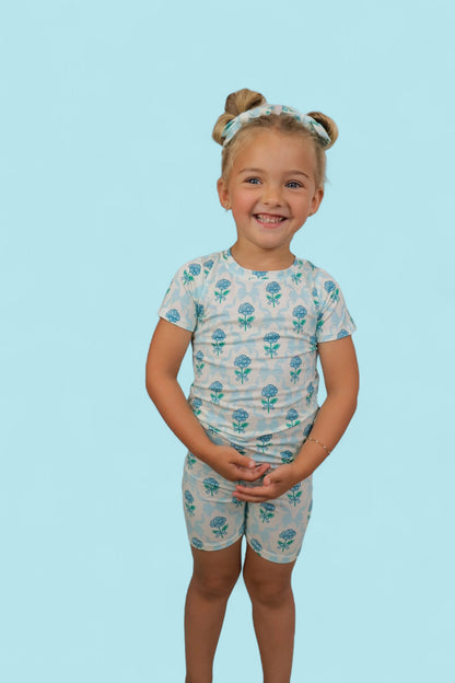 Make warmer nights extra dreamy with our Blue Ribbon Blooms Dream Short Set. Featuring a dainty blue floral and ribbon print on a creamy backdrop, this pajama set combines vintage charm with everyday comfort—perfect for bedtime, lounging, or early morning cuddles.