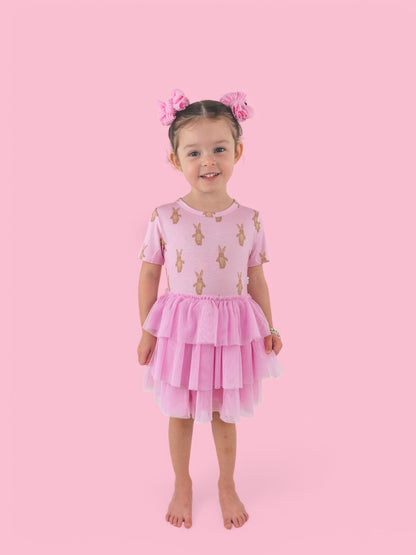 Crafted from the softest and most breathable bamboo viscose, this dress is as cozy as it is cute. Whether she's hunting for Easter eggs or twirling through springtime adventures, she'll stay comfortable and stylish all day long. The ruffled tutu detail adds a touch of extra sass and flair, making it the ideal choice for playdates, family photos, or any celebration.