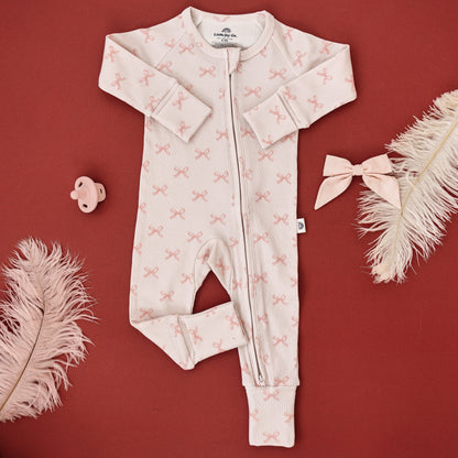 Blushing Bows Ribbed Bamboo Zippy Pajamas