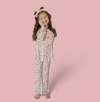 With extra length for added comfort, the Bunnies and Bows Dream Girl's Flare Set will provide a snug yet roomy fit that your child can wear as they grow. It’s perfect for lounging, play, or sleep, offering the ultimate comfort and style. Plus, you can create a matching moment by pairing it with the Dream Set for mom!