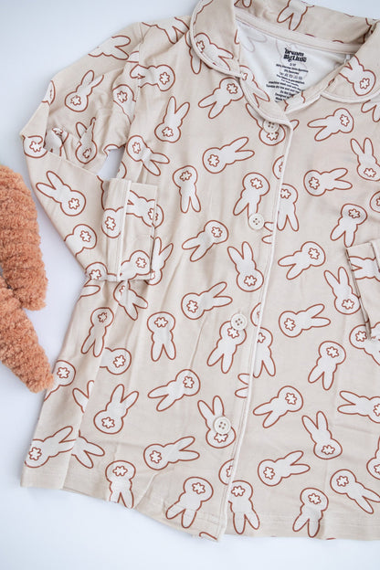 Get your little bunny hopping to bed with our Bunny Tails Girl's Dream Gown! Made from luxurious bamboo material, this night gown features a playful Easter print and adorable bunny tails. She'll have a dreamy (and comfortable) night's sleep in this fun and quirky gown.