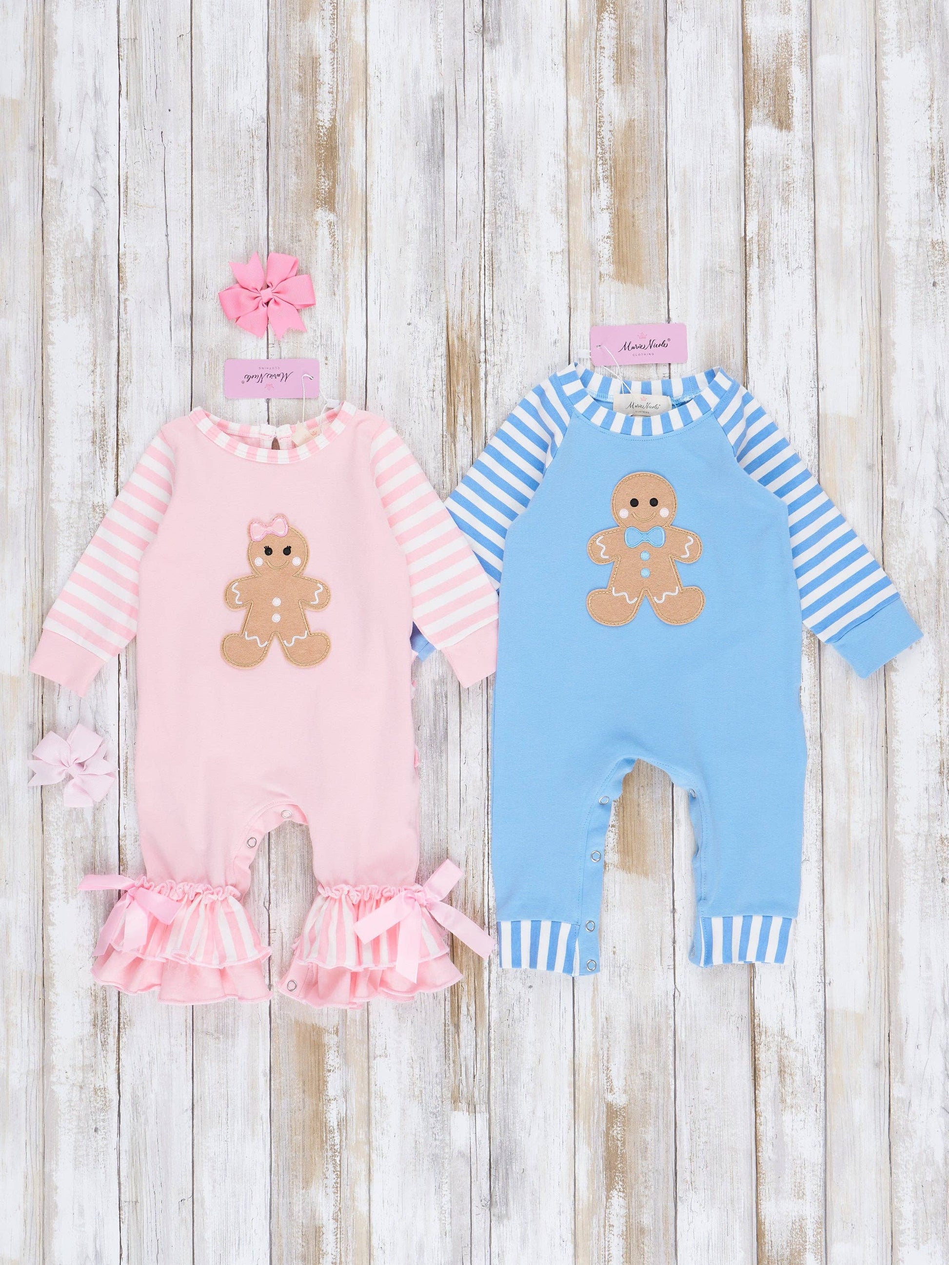 The cutest jammies for brother & sister to match in this Christmas (or year-round -we won't judge)! They're 100% super soft cotton with the right amount of stretch for a comfy fit. We love this gingerbread applique! * Fits true to size.