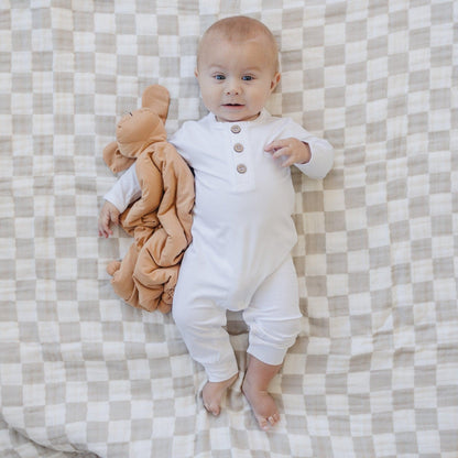 Measuring at 14.5x14.5" (excluding the animal head), our lovey is the perfect size for tiny hands to grasp and snuggle. Whether it's cuddle time, playtime, or on-the-go, this lovey is designed to be your child's constant companion.