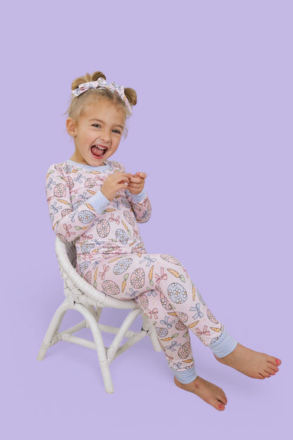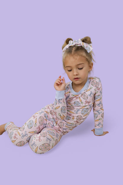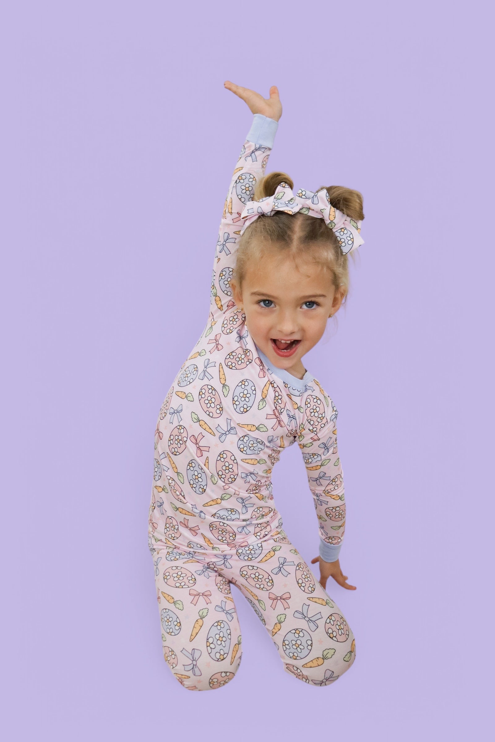 Hop into the Easter spirit with our Easter Daisy Dream Bow Hair Clips! These charming clips are the perfect accessory for your little one’s springtime ensemble. The adorable Easter Daisy print features pastel-colored Easter eggs adorned with sweet white daisies, vibrant orange carrots with leafy green tops, and soft pink and blue bows—perfectly capturing the joy and whimsy of Easter! With tiny pastel stars scattered across a light pink background, these clips add a fresh and festive touch to any outfit.