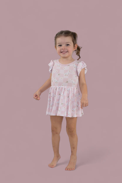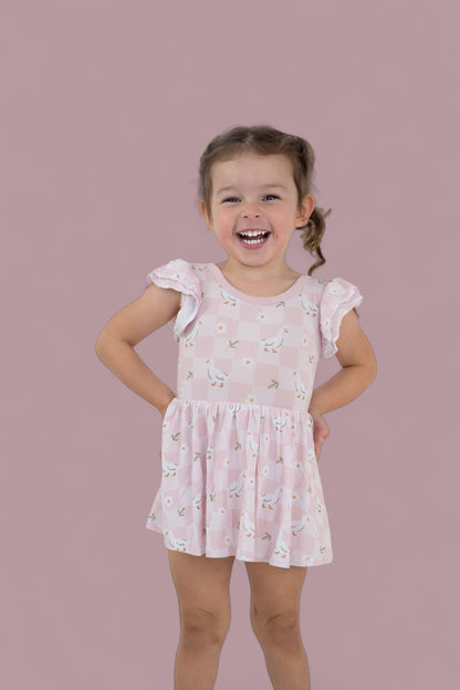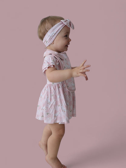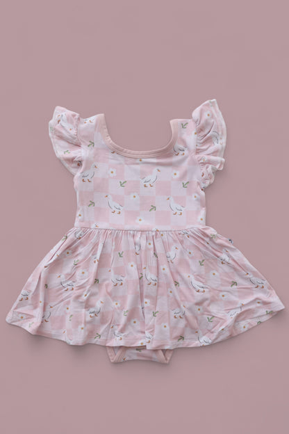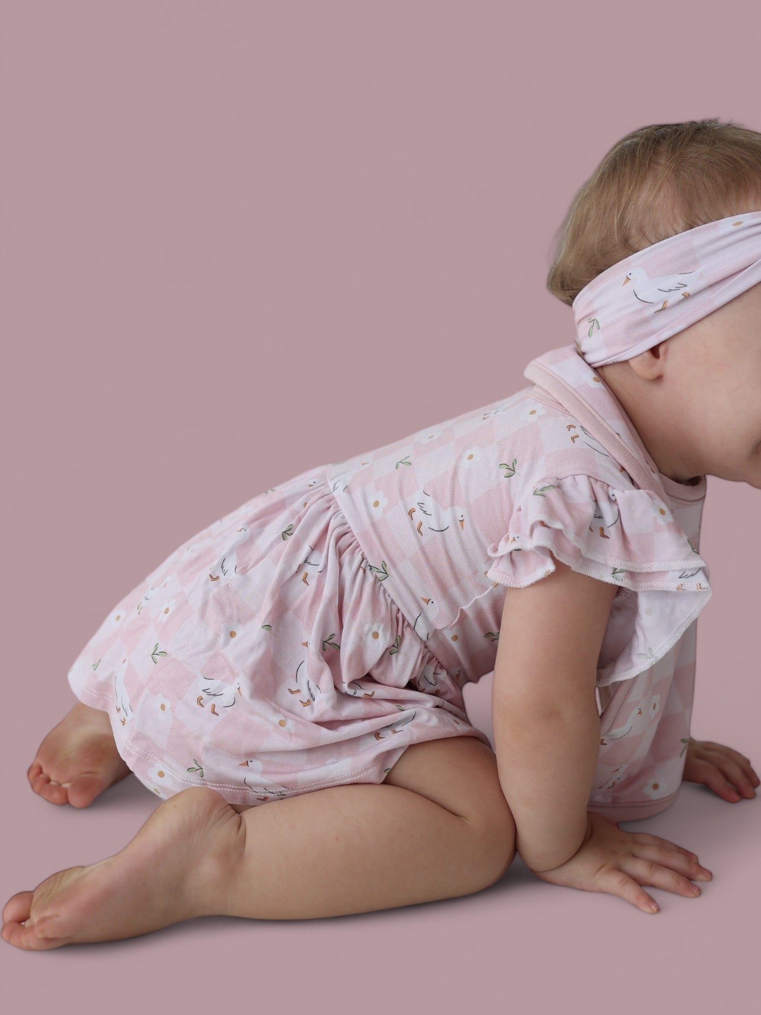 Pair this charming dress with our matching Dream Bow for an extra dose of cuteness or cuddle up with our Ducks and Daisies Dream Ruffle Blanket for a cozy nap. Whether you’re looking for a stylish outfit or a soft, breathable piece for playtime, this bodysuit dress is sure to be a favorite.