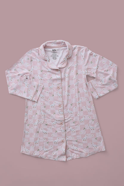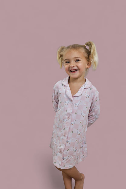 The Exclusive Ducks and Daisies Girl’s Dream Gown brings comfort and cuteness to your little one’s sleep routine. With its adorable design of playful ducks and delicate daisies, this bamboo kids gown is perfect for snuggling up and drifting off in style. Crafted from the softest, breathable bamboo viscose, this gown ensures your child sleeps soundly with a cozy, irritation-free feel.
