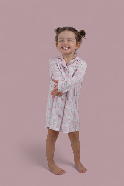 This girl’s bamboo nightgown offers not just comfort but adorable style, making it a bedtime favorite. Treat your little one to dreamy nights and playful mornings with this sweet and practical gown, designed for extra snuggles and the cutest sleepwear vibes.