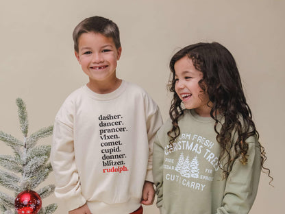 Celebrate the magic of the season with our Farm Fresh Christmas Trees Crewneck Sweatshirt. This cozy, holiday-inspired crewneck features a charming vintage "Farm Fresh Christmas Trees" design, perfect for little ones. Crafted from a soft, durable fabric, it’s available in sizes 6/12 months to size 8, making it ideal for holiday festivities, family outings, or casual winter wear. With its comfortable fit and festive style, this crewneck will become a holiday favorite for your child!