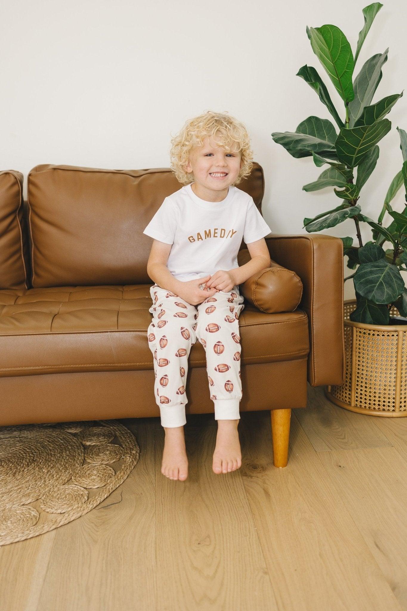 Discover our Gameday Graphic Tee, the perfect choice for your child's game day attire. This versatile tee is available in sizes ranging from 12-18 months to 4T, ensuring a comfortable fit for every young sports enthusiast. Crafted entirely from 100% organic cotton, it not only provides comfort but also reflects our commitment to eco-friendliness.