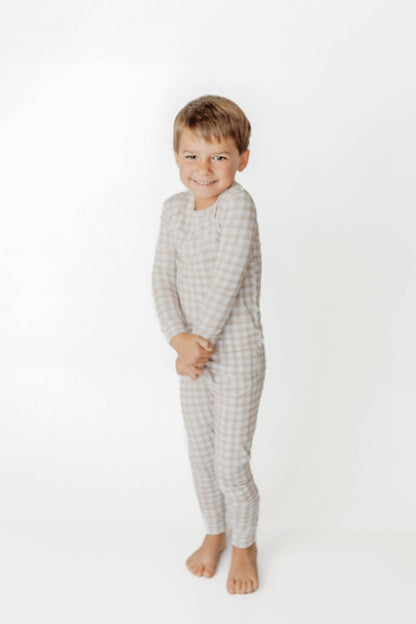 Discover our popular long sleeve pajama sets that are not only breathable, stretchy, and luxuriously soft but also designed to prevent overheating in children. Key Features: • Includes a long sleeve top and long pants • Snug fit without flame retardants • Made of 95% Viscose from Bamboo and 5% Spandex • Easy care: Machine wash cold with like colors, tumble dry low, cool iron if needed