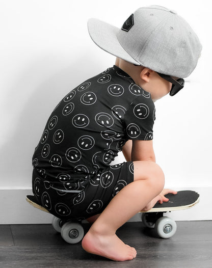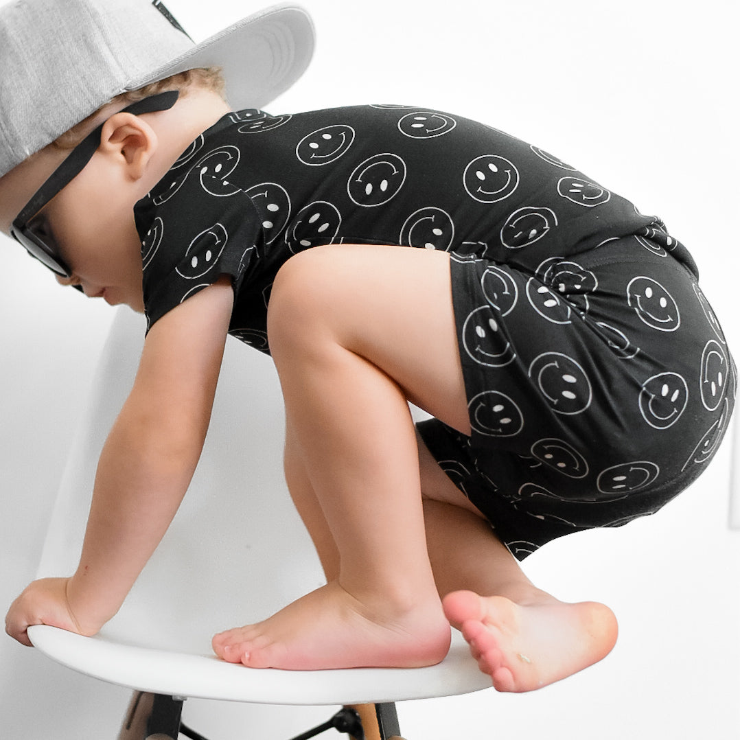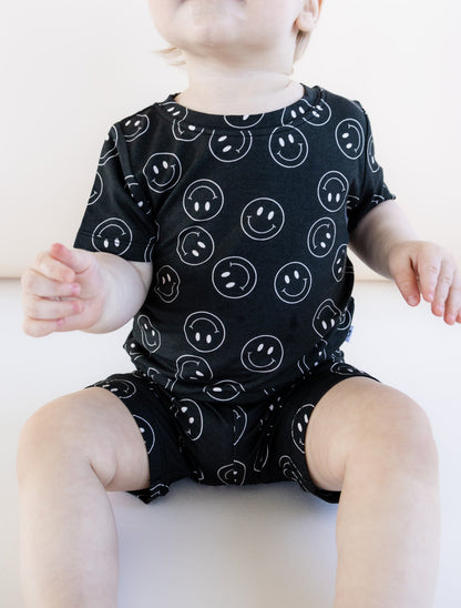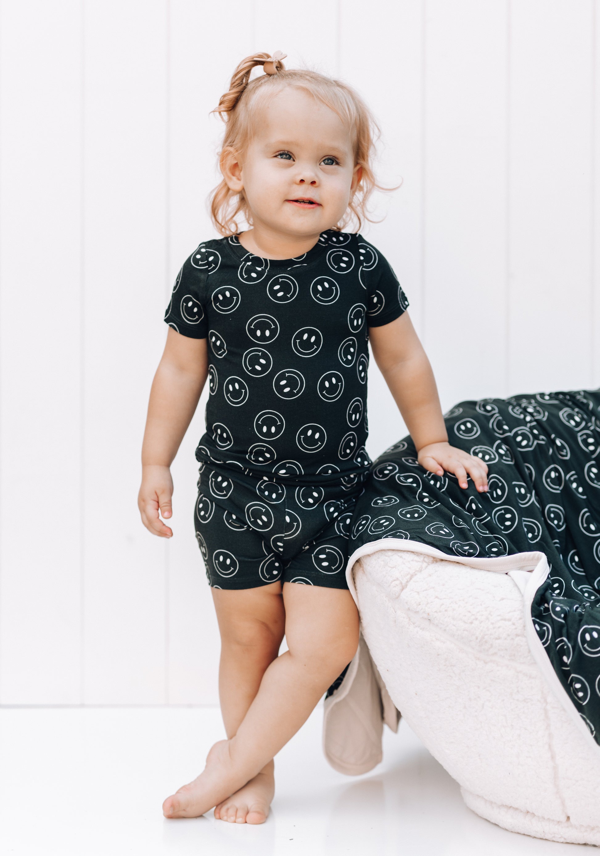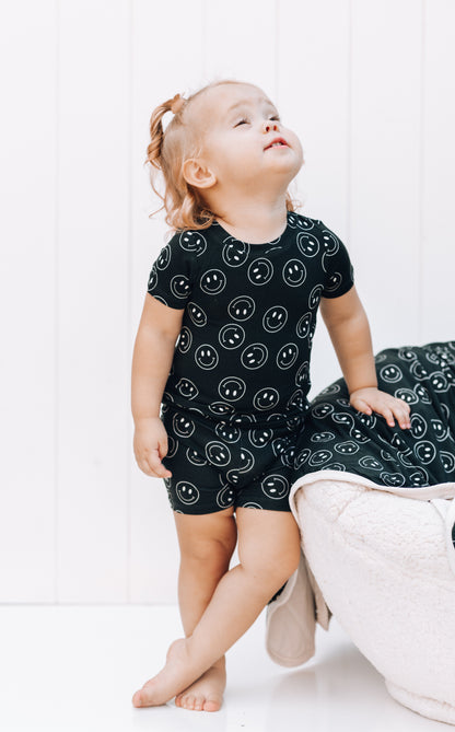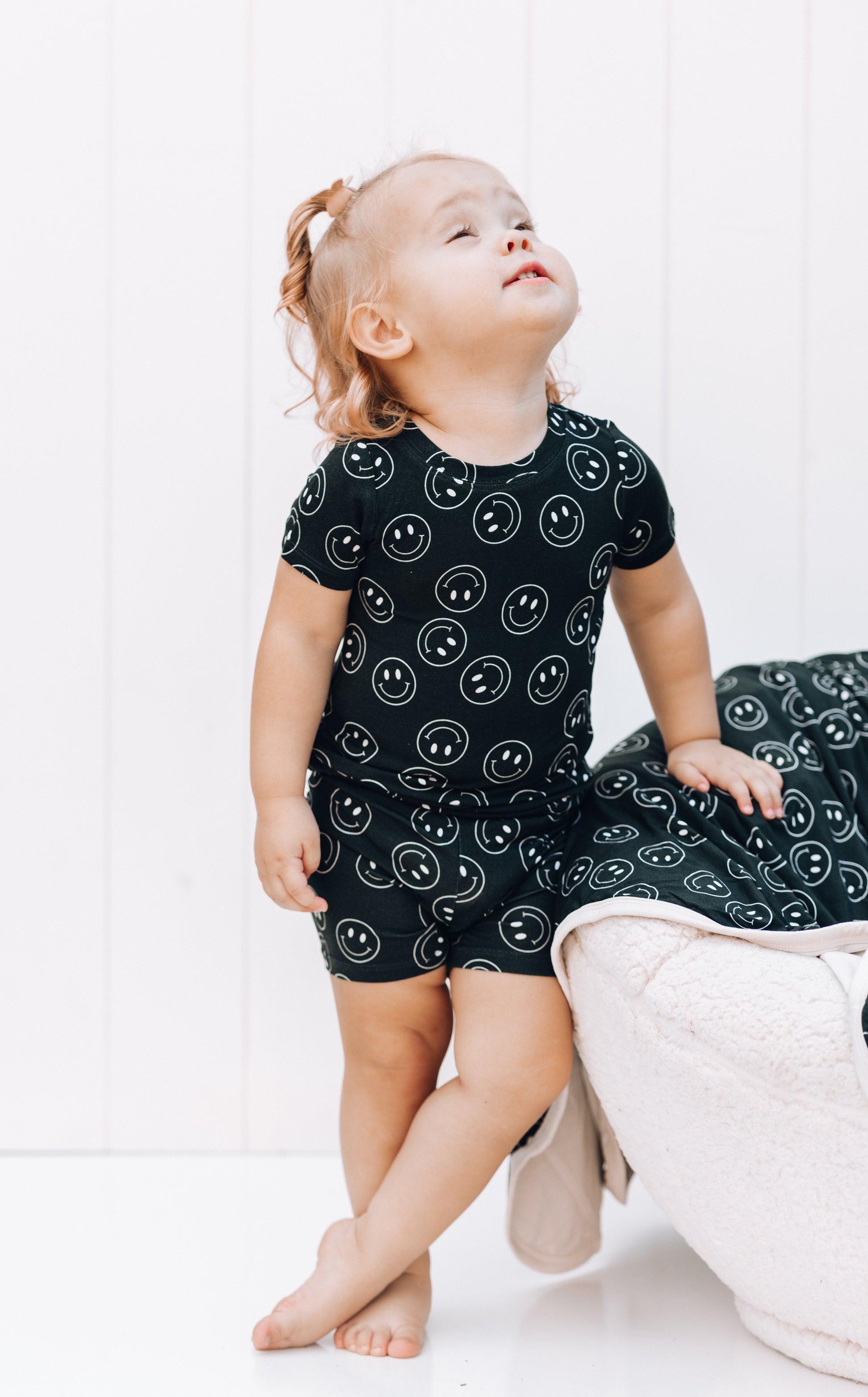 Dress your little one in comfort and fun with the Midnight Smiles Dream Short Set! This set includes a short sleeve shirt and shorts made with ultra soft bamboo fabric that's perfect for skin and guaranteed to keep the dreamin all night. Plus, the playful smiley print will put a grin on their face. Let the good times roll!