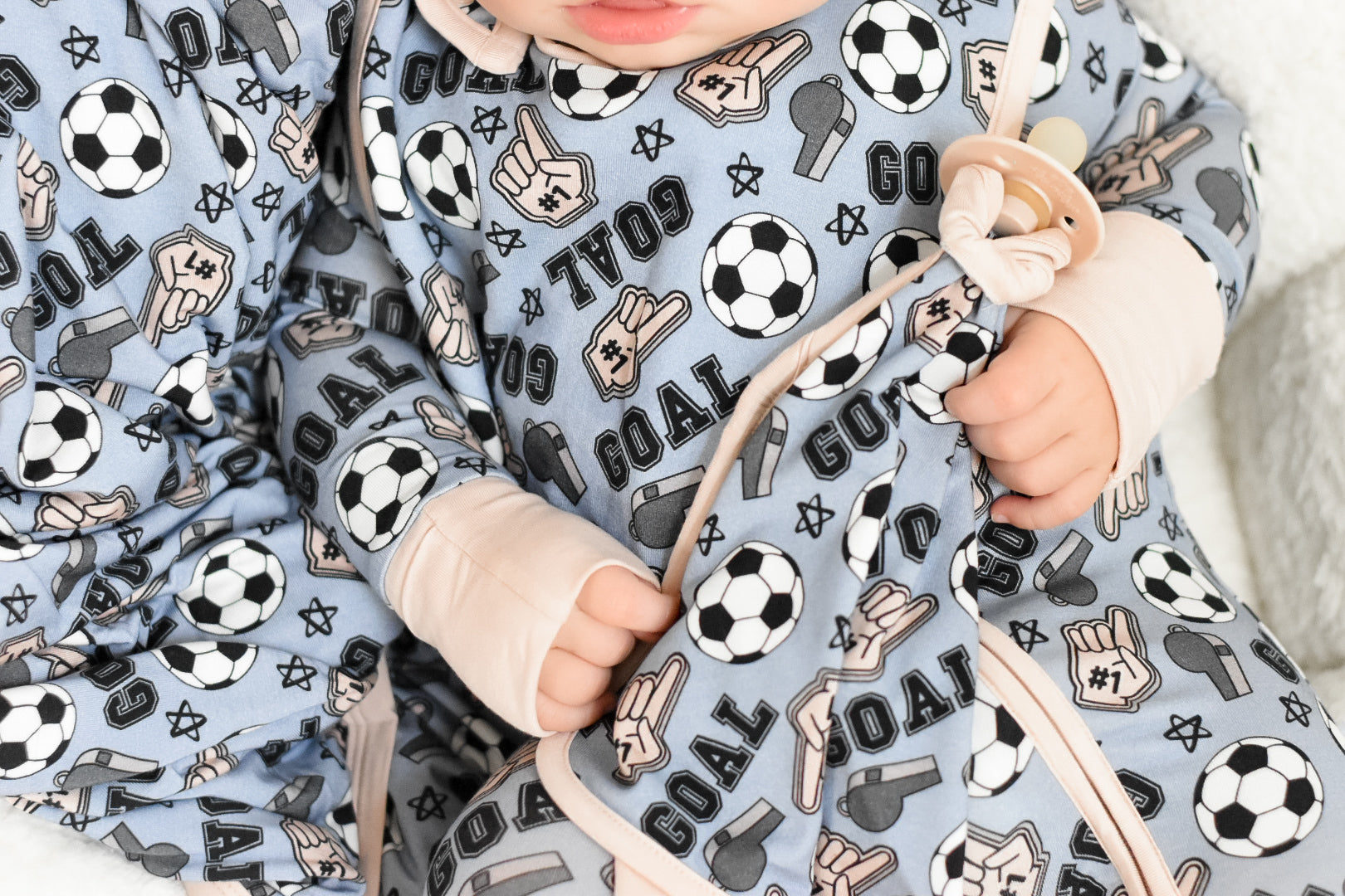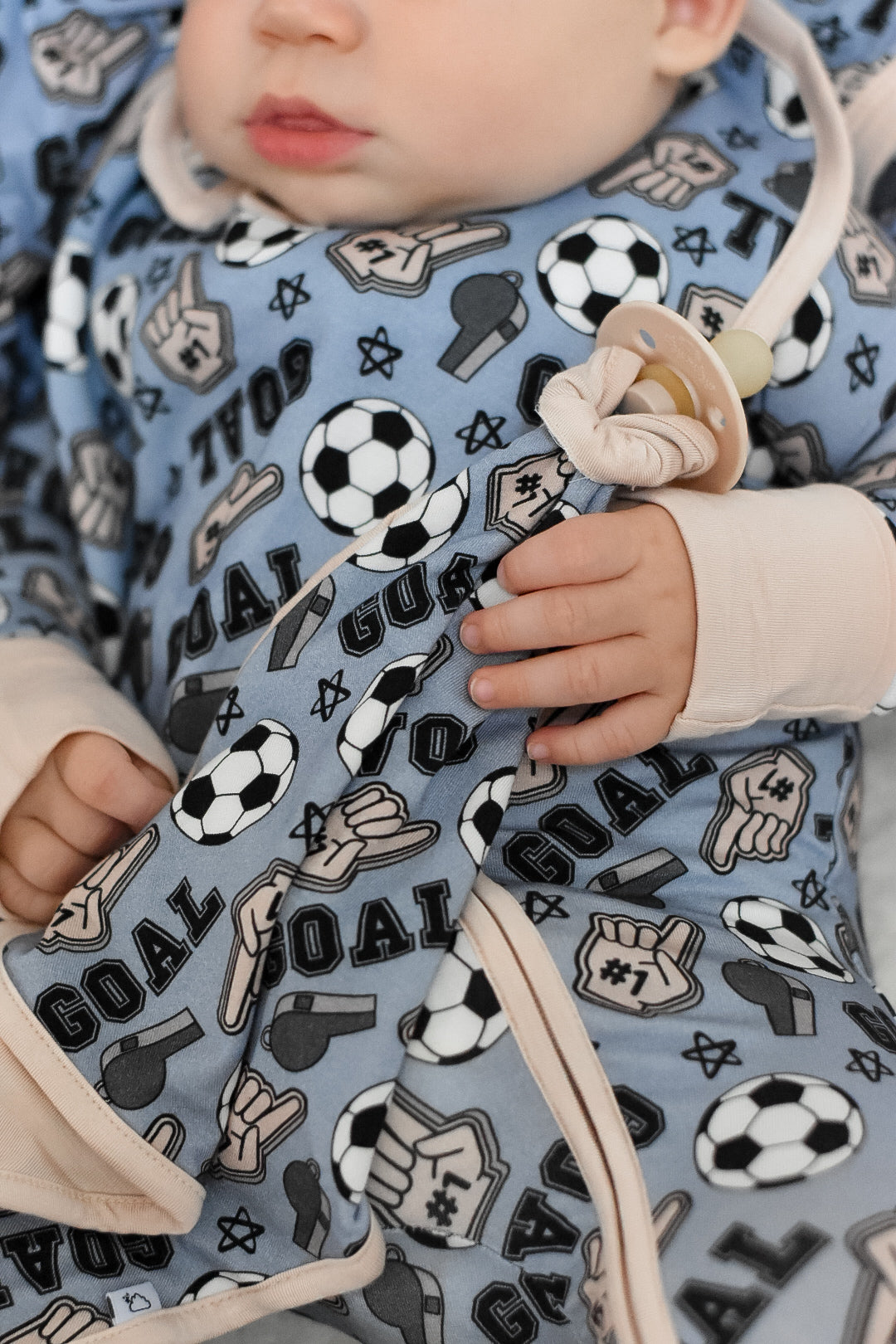 Inspire your little fan with OH MY GOALS DREAM LOVEY. Let them show their excitement by attaching it to their pacifier. The perfect accessory for any tiny fan!