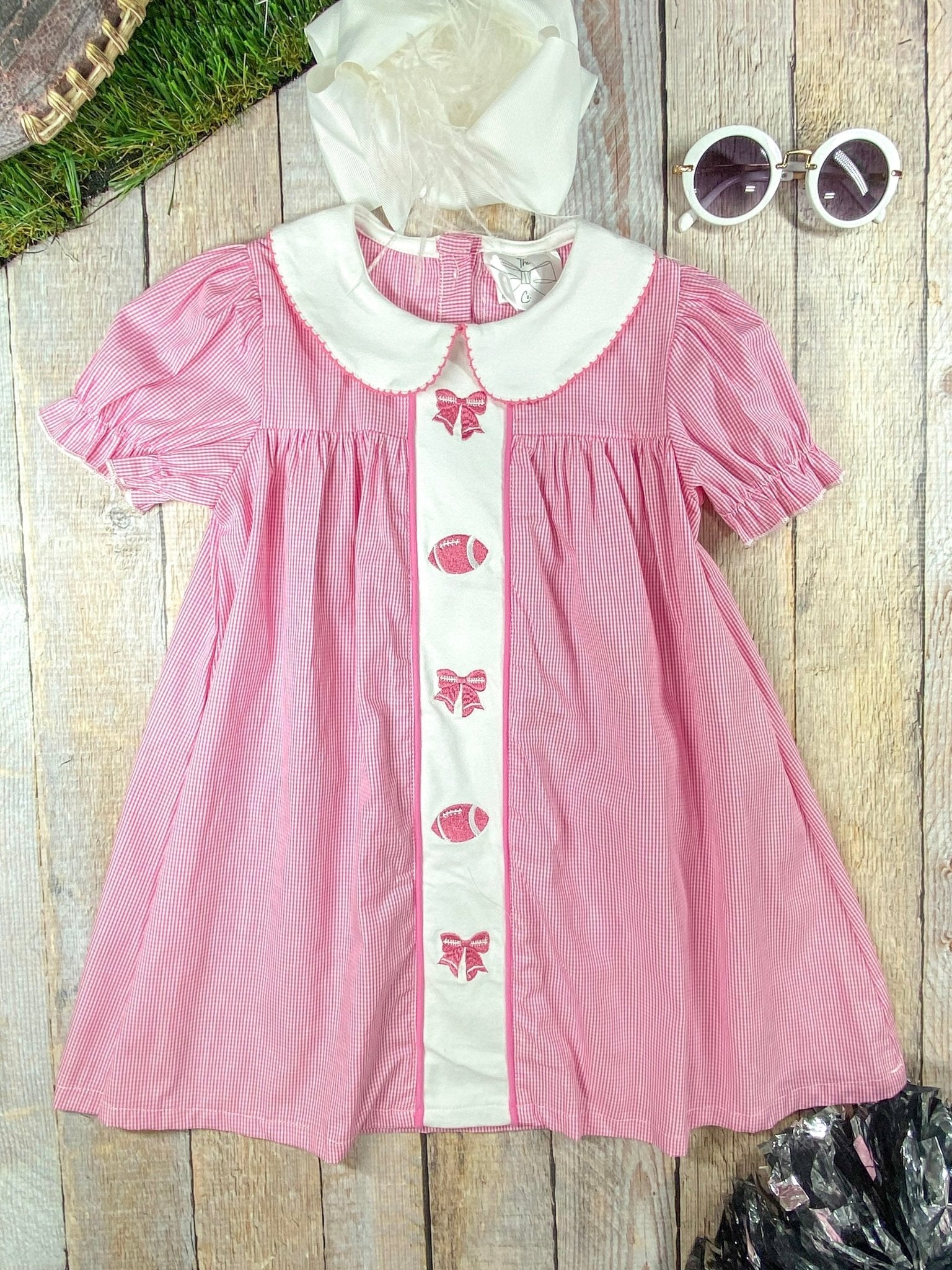 Touchdown in style! 🏈💗 Your little one can cheer on her favorite team while showing off her girly side in our Pink Bows & Footballs Girls Dress—the perfect blend of sporty and sweet!