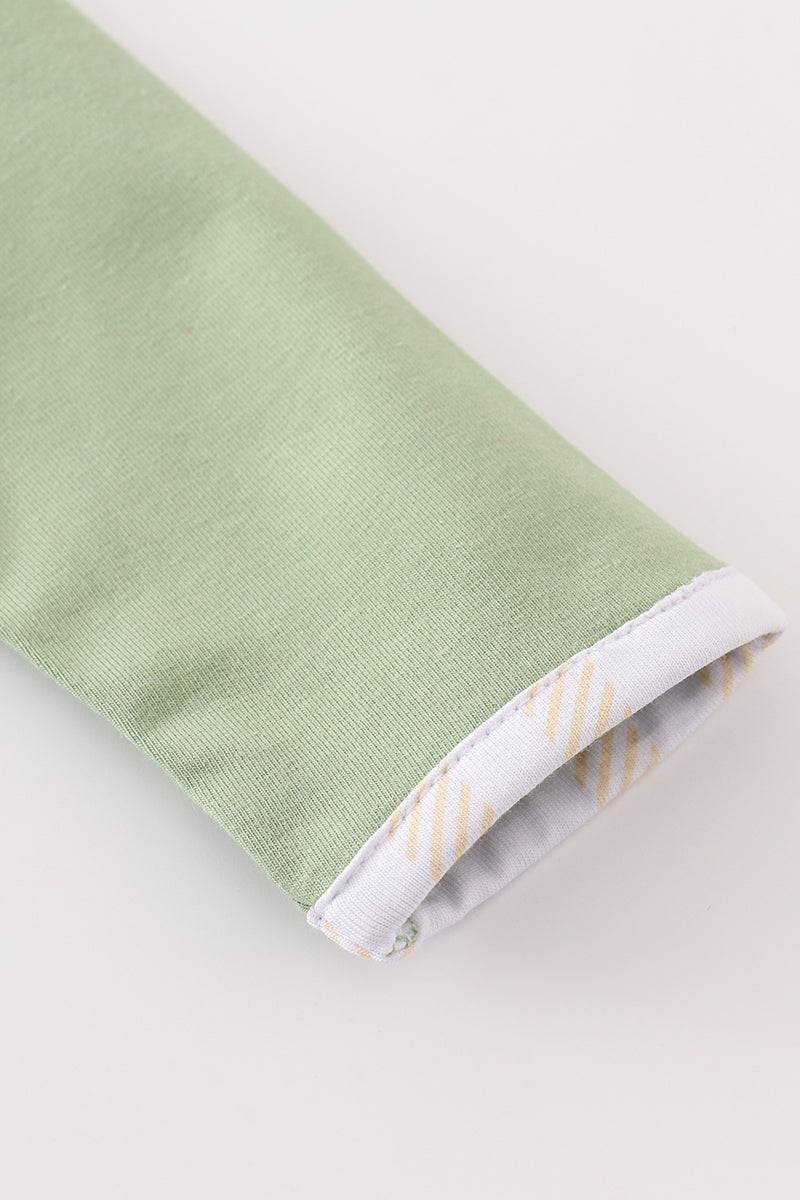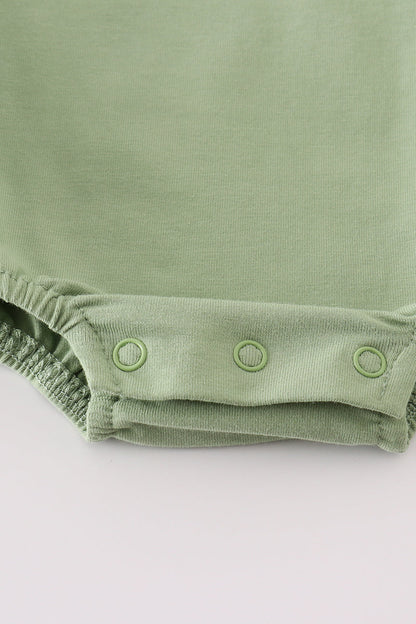 Get your little one ready for the holidays with this adorable green turkey embroidered boy bubble! Featuring playful word play and a quirky design, this bubble is sure to make a statement. Perfect for family gatherings and festive photoshoots.