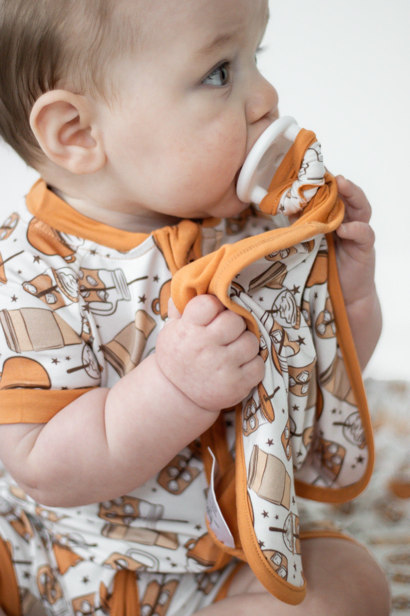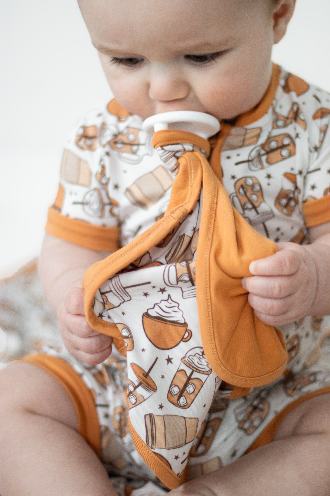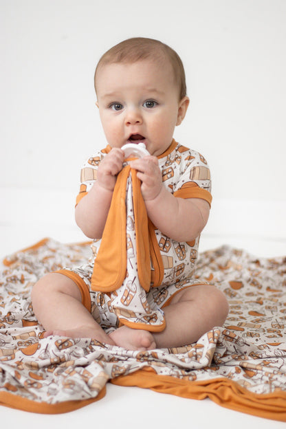 Get ready to start your day (and your little one's!) with the Rise and Grind Dream Lovey! This lovey not only keeps pacifiers close by, but is made from soft and sustainable bamboo material. Perfect for any coffee lover (young or old) who is ready to have some fun!