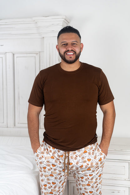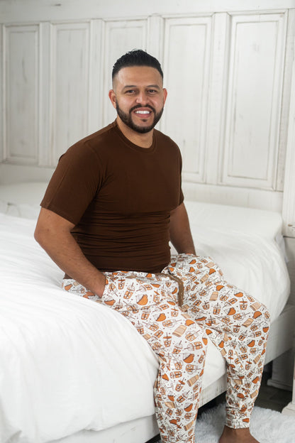 Stay cozy and stylish in our Rise and Grind Dream Men's Jogger Set. Made with soft bamboo material, this set includes a short-sleeve top and comfortable joggers. Perfect for coffee lovers, you can also match with your little ones in our fun collection. Wake up and conquer the day!