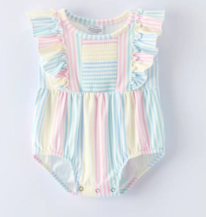 Hop into Easter fun with this adorable ruffle smocked romper! Featuring delicate smocking details and charming ruffles, this one-piece wonder is perfect for spring celebrations and photo ops. The soft, comfortable fit keeps your little one happy all day long, whether she's hunting eggs or playing with friends.