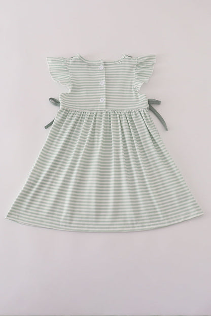 Add a splash of whimsy to your wardrobe with the Sage Stripe French Knot Ruffle Dress. Its charming French knot texture and flirty ruffles dance together on soft sage stripes, creating a playful look perfect for sunny strolls or casual brunches. Light and breezy, this dress keeps you comfortable while turning heads with its unique, fun details.