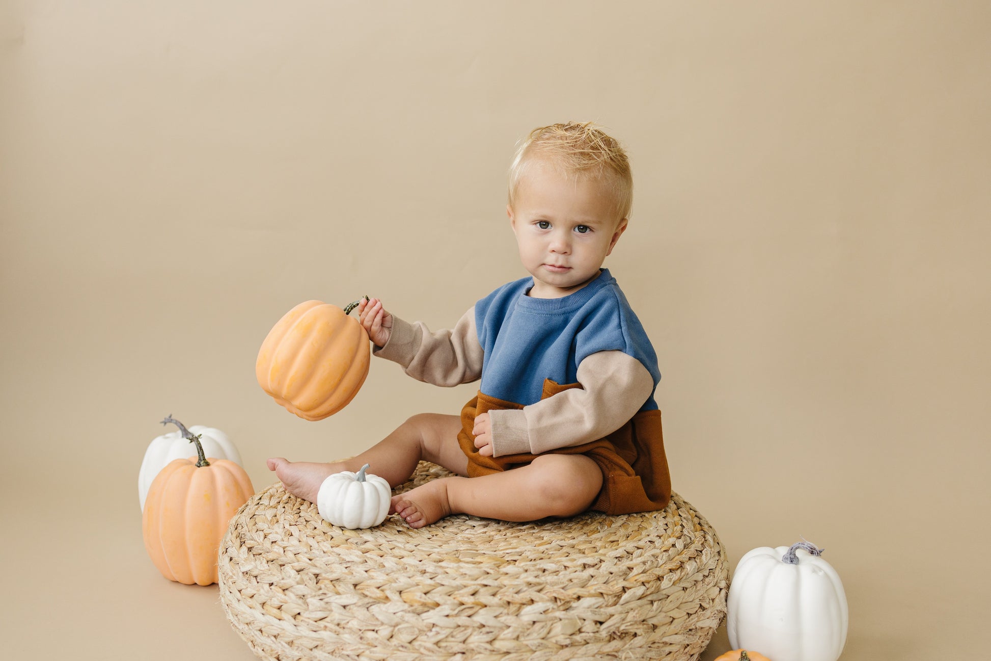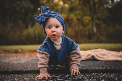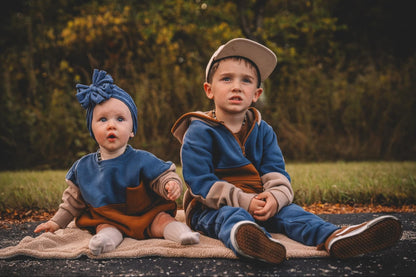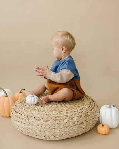 Little Joy Co. x Salt and Pine Color Block Oversized Sweatshirt Romper - Embrace autumn vibes with this cozy and stylish oversized sweatshirt romper. Featuring a convenient snap closure at the crotch, it guarantees easy dressing and diaper changes. The charming fall themed color blocking design ensuring a solid style for boys and girls this fall!