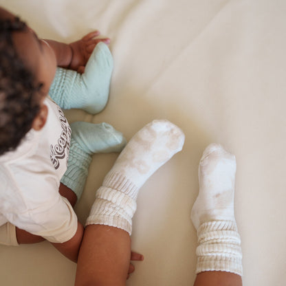 Those tiny feet deserve all the warmth and what's the best way to keep them cozy than in some slouch socks. These super soft socks have a flexible knit that provides a ribbed texture and a natural stretch that molds to your baby's feet. Comes in a range of neutral colors.