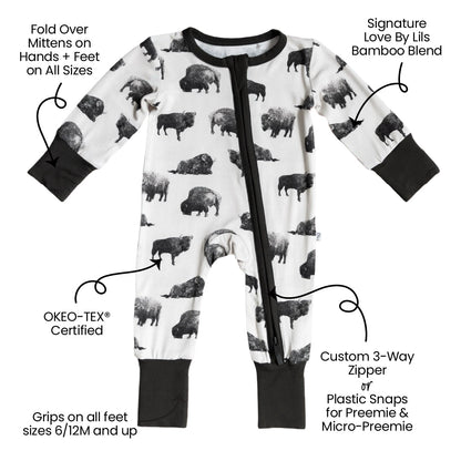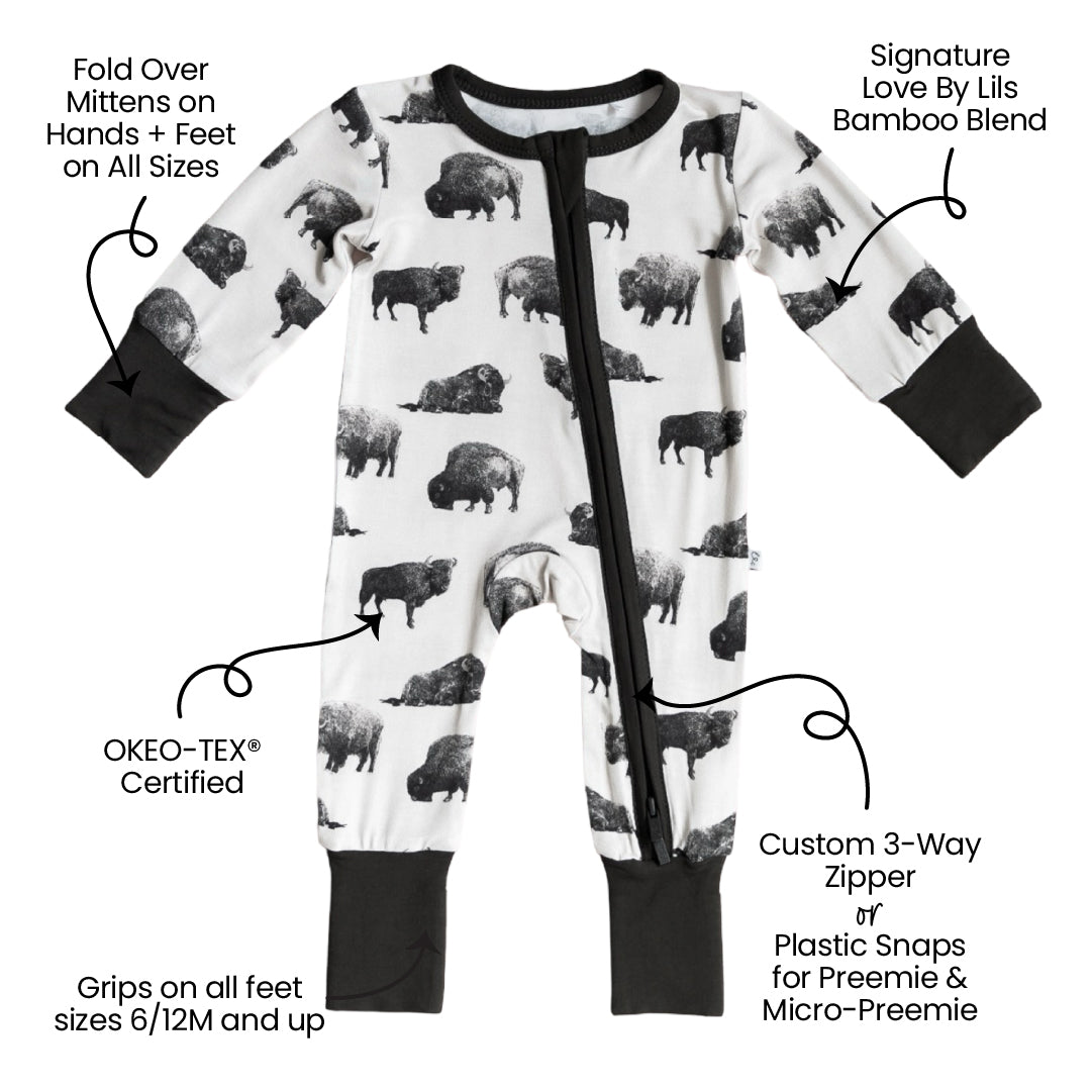 Laree + Co.'s luxuriously soft bamboo one-piece convertible footie with three-way zippers is a game changer. They make diaper changes a breeze and are also perfect for our little warriors with tubes and wires!