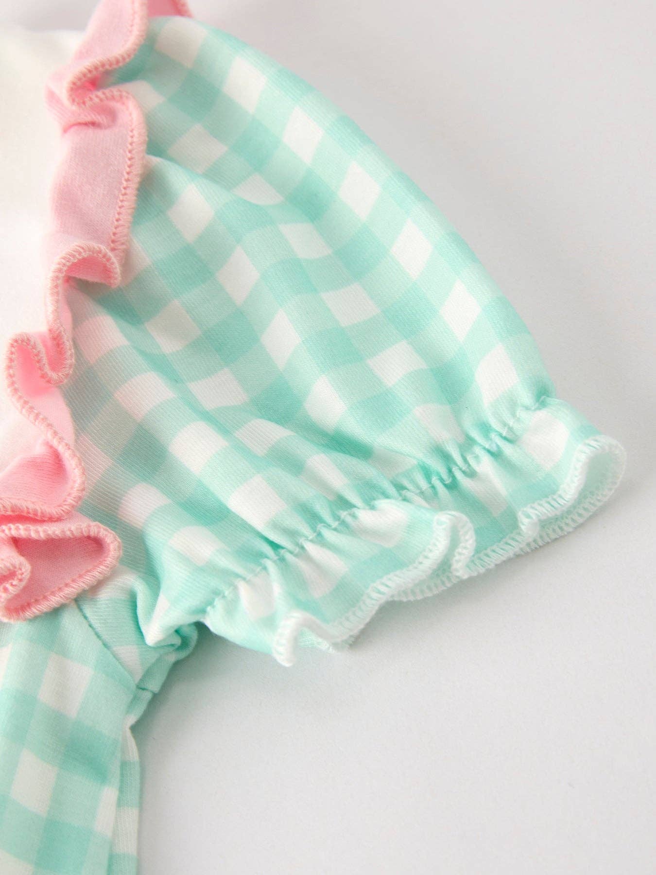 Celebrate the season in style with this charming girls romper featuring embroidered pumpkins and flowers on a classic check pattern. Perfect for Thanksgiving Day, its cozy design ensures comfort while adding festive flair to your little one’s wardrobe. Ideal for family gatherings and fall photos, this romper blends seasonal charm with playful elegance.