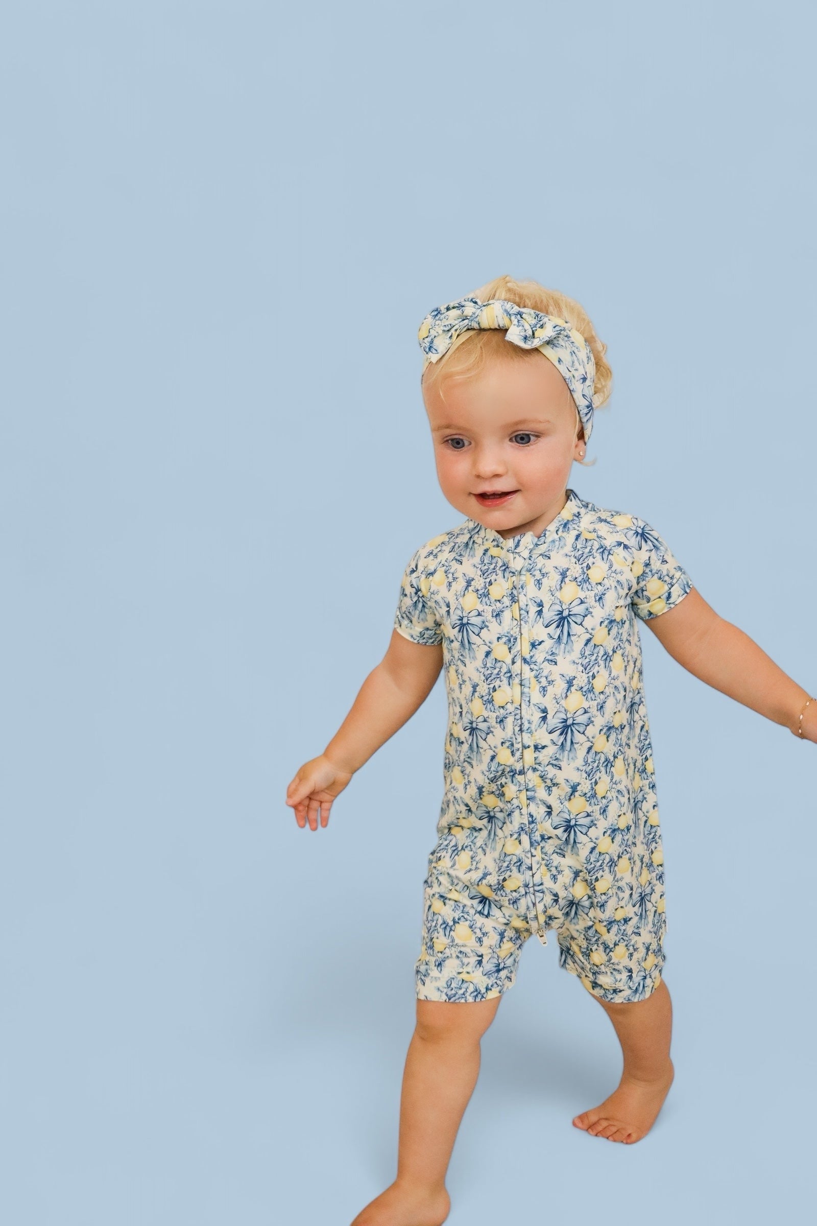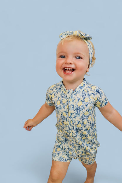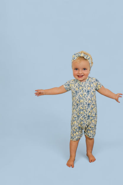 Play all day, nap in style! The Dream Shortie in our bright and cheerful Vintage Citrus Toile print is the perfect warm-weather essential. Made from ultra-soft, breathable bamboo viscose, it keeps your little one cool, comfy, and ready for anything.