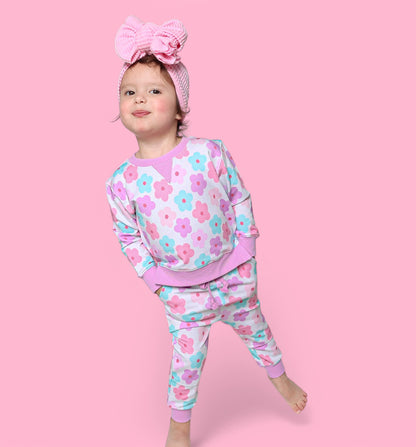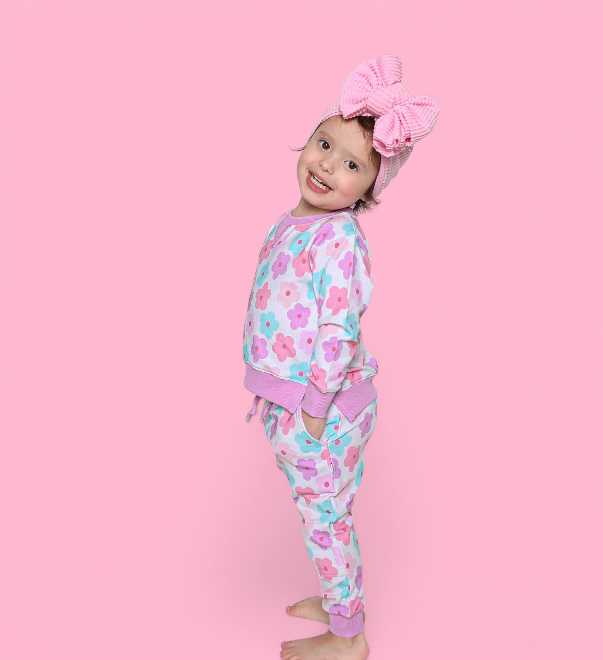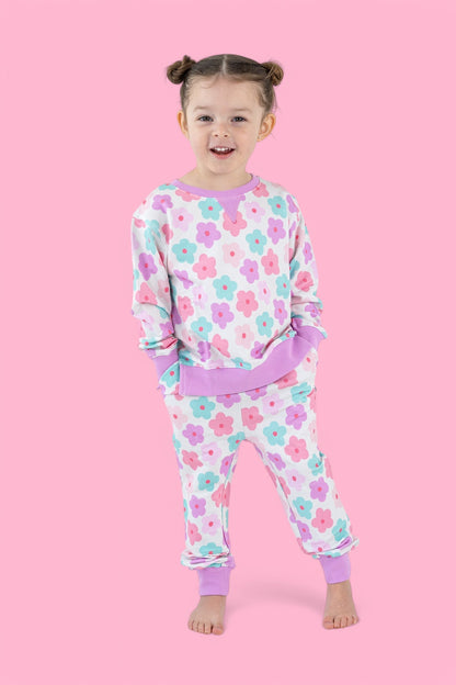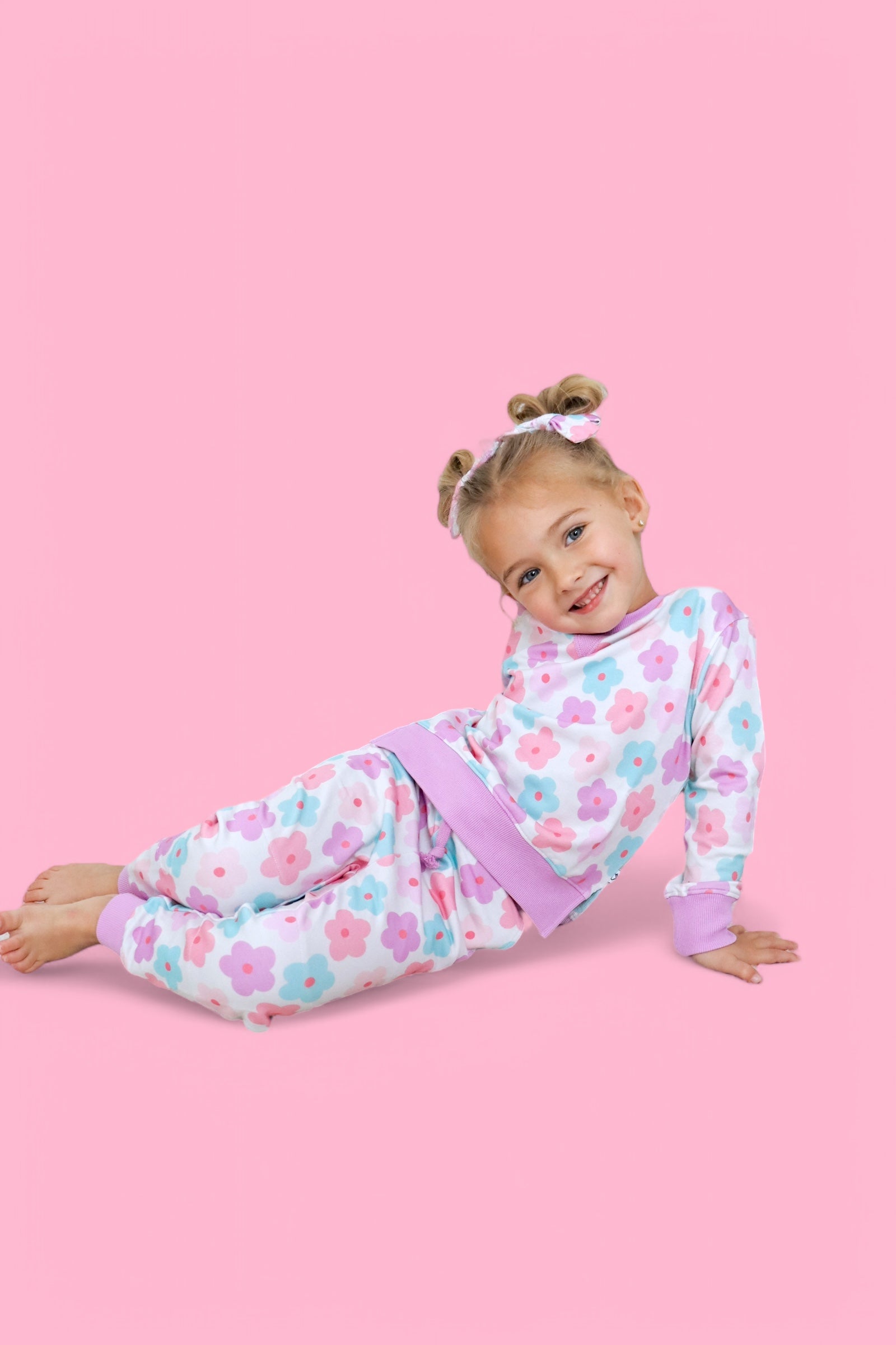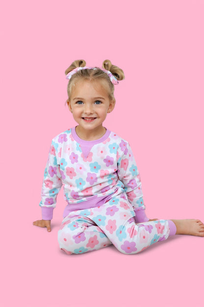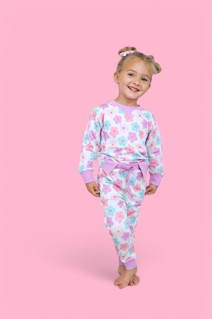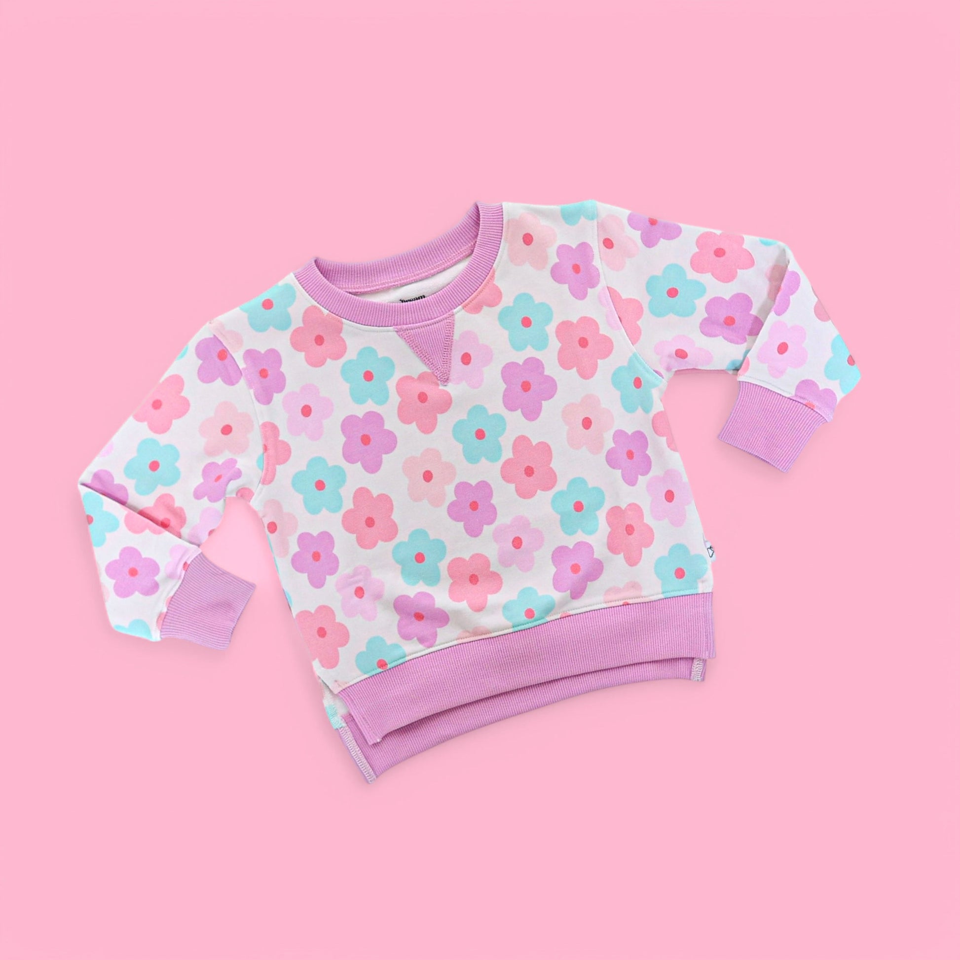 Step into spring with the charming Violet Fields Dream Pullover, a must-have addition to your little one’s wardrobe. Featuring a delightful all-over floral print in pastel hues of pink, purple, mint, and cream, this pullover radiates cheerful, carefree vibes perfect for the season.
