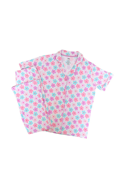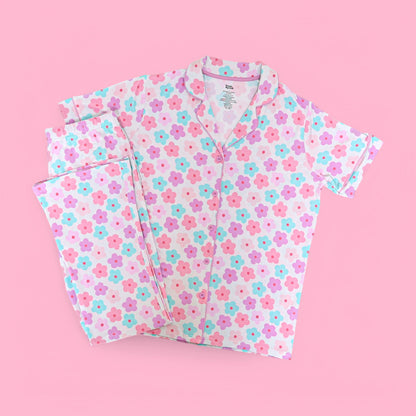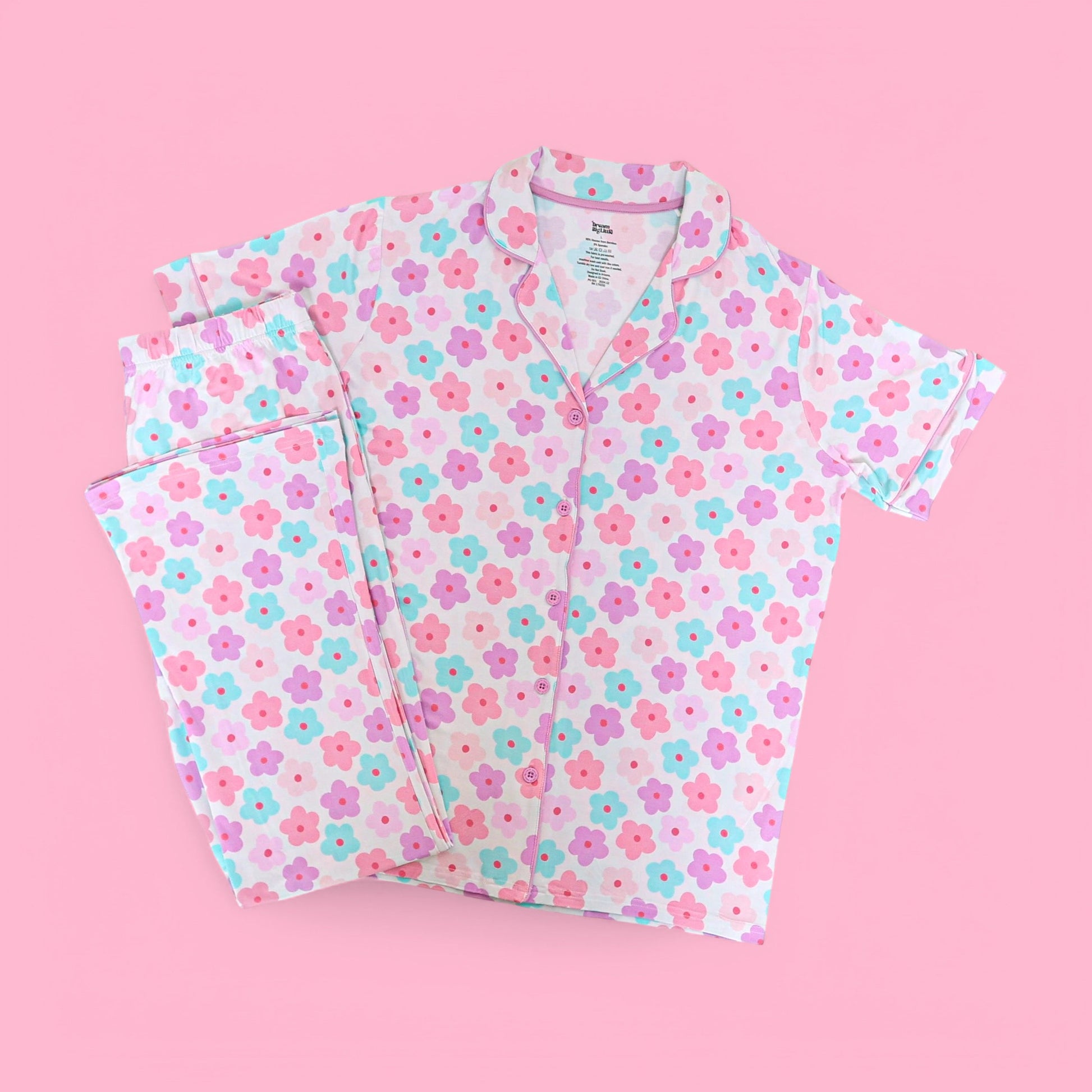 Step into a world of springtime serenity with the Violet Fields Women's Dream Set. Perfect for unwinding in comfort and style, this two-piece set features a whimsical floral print in soothing hues of lavender, pink, and mint, evoking the gentle beauty of blooming fields.